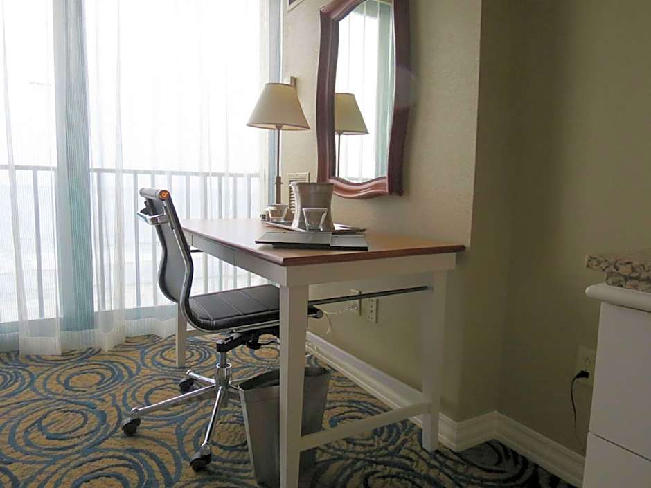 This ADA room overlooking the City of Daytona Beach. Extras include controlled air-conditioning, a TV, and a private bathroom with bathrobes.
